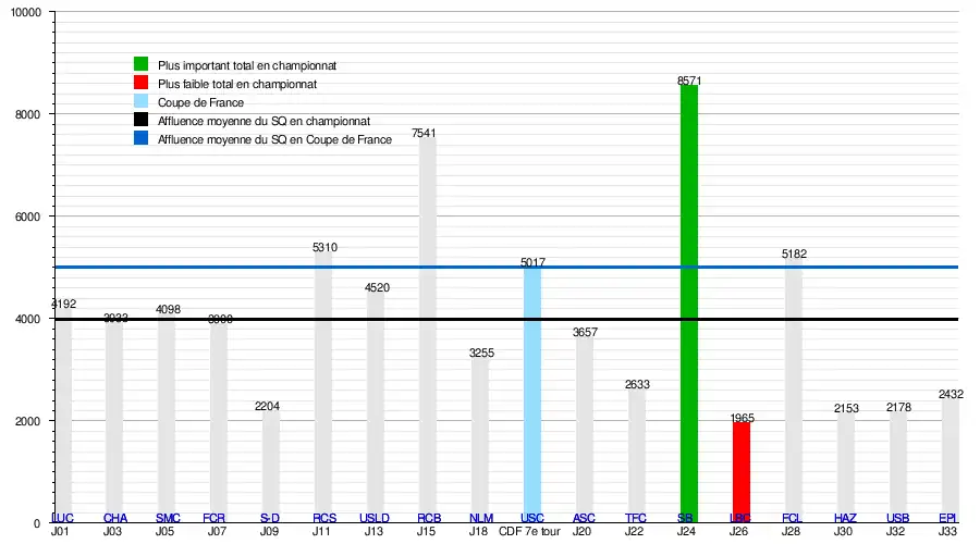 L'affluence à domicile du Stade Quimpérois atteint un total[21],[22] :
