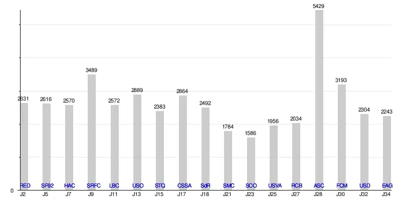 15e 25 points (6V - 13N - 15D) 35 buts pour, 56 contre |
