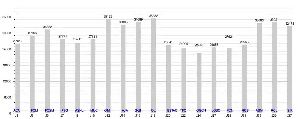 - Affluence à domicile : 553.937 Spectateurs, Moyenne : 28.985 Spectateurs soit 82,4 % de remplissage du Stade Geoffroy-Guichard.