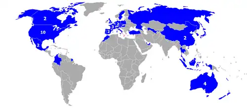 L'absence de chiffre signifie qu'un seul tournoi est organisé dans le pays concerné.
