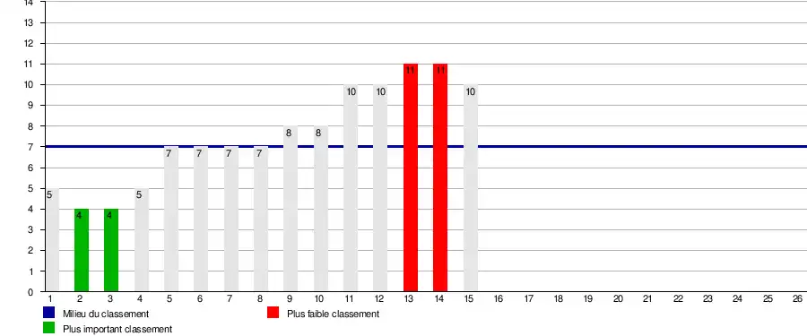 Ce graphique représente le classement de l'équipe par journée.