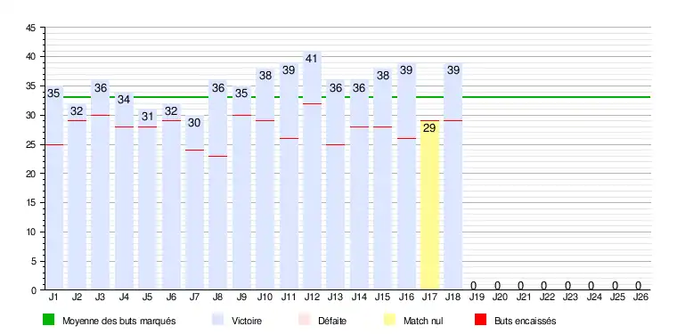 Ce graphique représente le nombre de buts marqués lors de chaque journée du championnat.