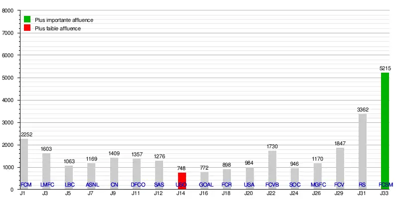 La meilleure affluence de la saison est réalisée contre le FC Sochaux-Montbéliard le avec 5 215 spectateurs à l'occasion de la 33e journée qui acte le maintien officiel du club en National.