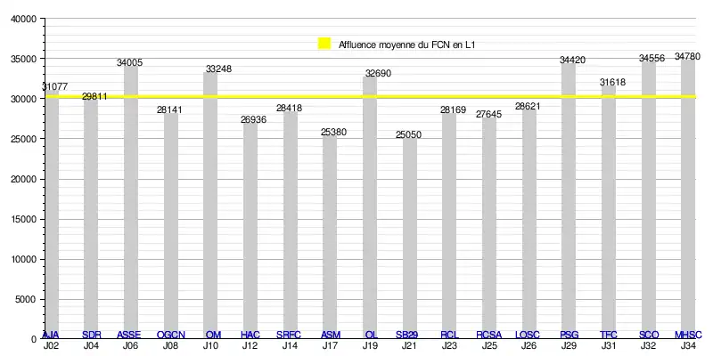 L'affluence à domicile du FC Nantes atteint un total[17] :