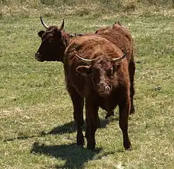 La salers est une race bovine française caractérisée par sa robe de couleur acajou et plus rarement noir ébène.