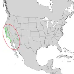 De petites populations sont citées en Oregon, dans le Nevada, et au Nouveau-Mexique. En Arizona, il peut être rencontré dans la zone de transition du Rim de Mogollon et au centre du Grand Canyon. Sa distribution s'étend vers le Virgin River canyon, du sud-ouest de l'Utah[2].