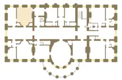 La salle est située juste au-dessus de la Salle à manger familiale au deuxième étage et donne sur la North Lawn. La salle est adjacente à une petite cuisine, et est desservie par un petit "ascenseur à plats" de type Dumb waiter connecté à la cuisine principale au rez-de-chaussée.