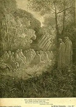 (image : " Salve Regina " et " Salve Bernarde ", œuvre de Heinrich Hugo Cöntgen[9], d'après la vision légendaire de ce saint, présentée dans la bibliographie écrite vers 1182 Vita tertia de Jean l'Ermite, sans doute moine de Clairvaux[sh 1],[uc 1]).