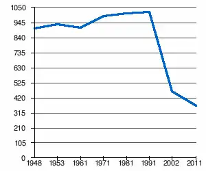 | 906 | 935 | 908 | 990 | 1 011 | 1 021 | 464[2] | 363[1] |