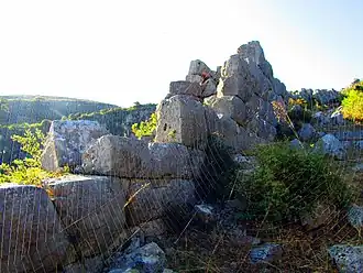 Une acropole classique coiffe la colline Elliniko, plus à l'est. Ces lieux ont été habités du IVe siècle avant notre ère aux temps de la Grèce romaine. Des poteries datant de la fin de la période helladique III y ont été découvertes. Au nord, se trouvent les restent de bains romains et d'un sanctuaire paléo-chrétien[14],[15].