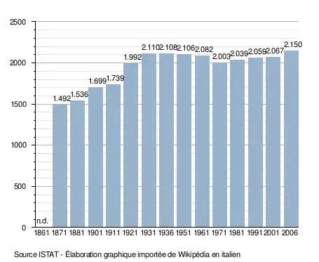- ↑ (it) Popolazione residente e bilancio demografico sur le site de l'ISTAT.