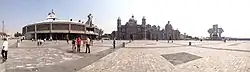 - Vue panoramique de la grande esplanade avec la nouvelle basilique (à gauche), l'ancienne (au centre).