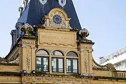 Aujourd'hui enclavé entre des immeubles résidentiels récents, ce bâtiment à la façade et la toiture remarquable correspond à l'ancien siège des Grandes Caves de Lyon, une usine de mise en bouteilles qui a été démolie à la fin des années 1990.