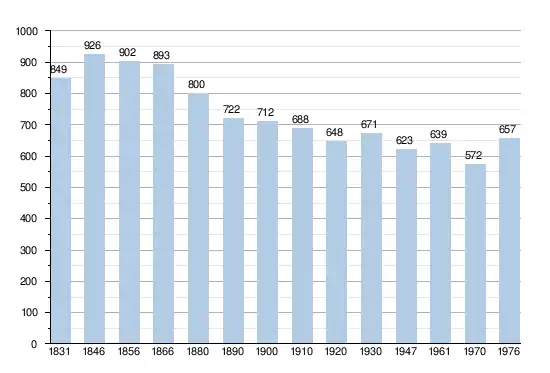 - Sources : INS, Rem. : 1831 jusqu'en 1970 = recensements, 1976 = nombre d'habitants au 31 décembre[3].