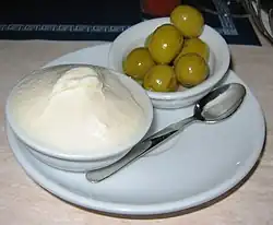La skordaliá est une purée épaisse issue de la cuisine grecque. Elle se prépare en mélangeant de l'ail écrasé à une base consistante, par exemple purée de pommes de terre, noix, amandes ou pain rassis imbibé. On ajoute ensuite de l'huile d'olive, tout en fouettant, pour créer une émulsion homogène[14]. Il est aussi courant d'y ajouter du vinaigre.