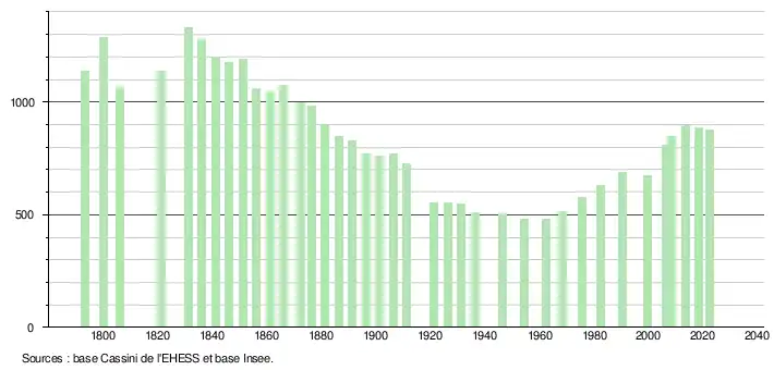 - ↑ Population municipale de référence en vigueur au 1er janvier 2025, millésimée 2022, définie dans les limites territoriales en vigueur au 1er janvier 2024, date de référence statistique : 1er janvier 2022.