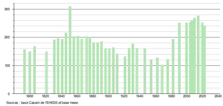 241 hab. (2022 en évolution de −14,54 % par rapport à 2016)