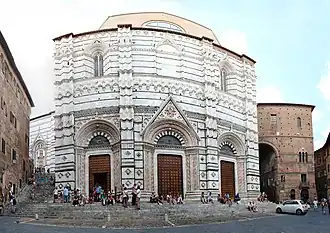 L'escalier en marbre, projeté par Giovanni Sabatelli, fut construit en 1451 par Giovanni d'Agostino, permettant l'accès depuis le parvis du Duomo, au baptistère, car les travaux de l'enrichissement du pavement du sol avaient condamnés les accès par l'intérieur de la cathédrale.