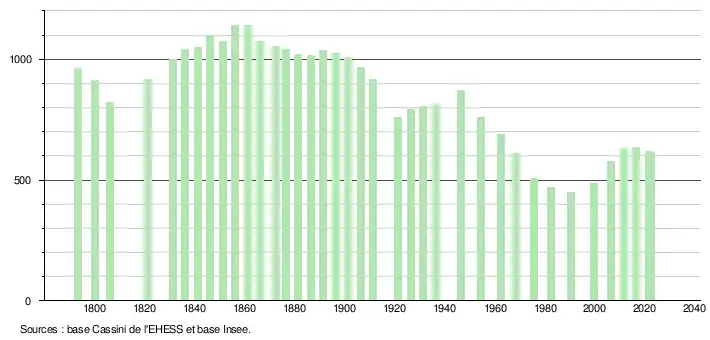- ↑ Fiches Insee - Populations de référence de la commune pour les années 2006, 2007, 2008, 2009, 2010, 2011, 2012, 2013, 2014, 2015, 2016, 2017, 2018, 2019, 2020, 2021 et 2022.