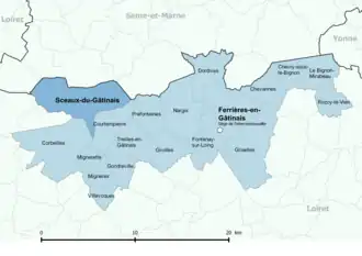 - ↑ « Rattachements administratifs de la commune de Sceaux-du-Gâtinais », sur le site de l'Insee (consulté le ).