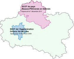 Périmètre de deux SCoT dans le département du Loiret, en 2011.