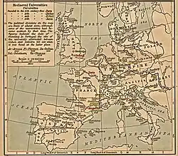 - Université médiévale, histoire des universités européennes, liste d'universités médiévales (en), chronologie des plus anciennes universités