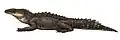 Le sommet de son crâne est plan , à la différence des crocodiles actuels où il s'élève vers l'arrière à partir des orbites. Ses narines sont situées à l'avant de son museau et non sur le sommet du crâne, une indication de plus pour une vie à terre.