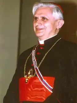 - ↑ Le cardinal Ratzinger ajoute avec une pointe d'humour : « Ceux qui attendaient des révélations apocalyptiques excitantes sur la fin du monde et sur le cours futur de l'histoire seront déçus ».