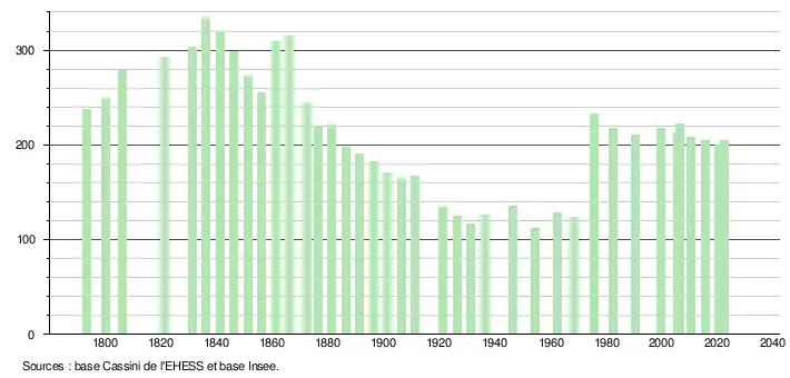 (Sources : Ldh/EHESS/Cassini jusqu'en 1999[7] puis Insee à partir de 2006[53].)