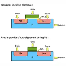 La technique de self-aligned gate est née en 1966, et fut brevetée aux États-Unis en [1].