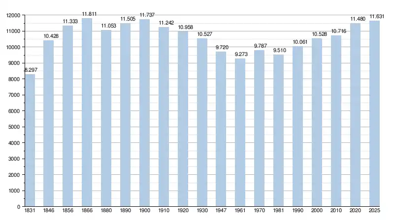 Les chiffres des années 1831 à 1970 tiennent compte des chiffres des anciennes communes fusionnées.