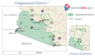- Le 3e district congressionnel d'Arizona devient le 7e district congressionnel d'Arizona.