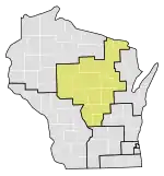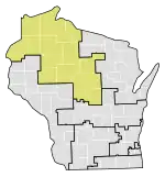 Le 7e district congressionnel du Wisconsin est un district situé dans le nord-ouest et le centre du Wisconsin ; c'est géographiquement le plus grand district de l'État, couvrant 20 comtés (en tout ou en partie), pour un total de 18 787 milles carrés. Le district comprend les comtés suivants : Ashland, Barron, Bayfield, Burnett, St. Croix, Chippewa (partiel), Clark, Douglas, Florence, Forest, Iron, Jackson (partiel), Juneau (partiel), Langlade, Lincoln, Marathon, Monroe (partiel), Oneida, Polk, Price, Rusk, Sawyer, Taylor, Vilas, Washburn et Wood (partiel).