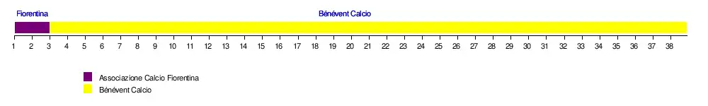 | Bénévent Calcio | 14 | 17 | 20 | 20 | 20 | 20 | 20 | 20 | 20 | 20 | 20 | 20 | 20 | 20 | 20 | 20 | 20 | 20 | 20 | 20 | 20 | 20 | 20 | 20 | 20 | 20 | 20 | 20 | 20 | 20 | 20 | 20 | 20 | 20 | 20 | 20 | 20 | 20 | 36 | |