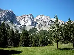 La végétation naturelle est abondante : forêts de pin rouge et forêts résiduelles de chênes dans les secteurs inférieurs, forêts de pin à crochet (Pinus uncinata) jusqu'à l'altitude de 2 200 m, puis des prairies de montagne en-haut avec présence de la gentiane des Alpes (Gentiana alpina)[9]. Des peuplements de sapin et le hêtre sont présents dans des zones plus humides.