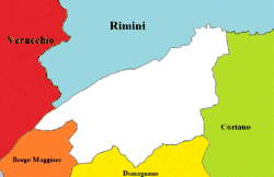 La commune est située au nord-est de la République de Saint-Marin.