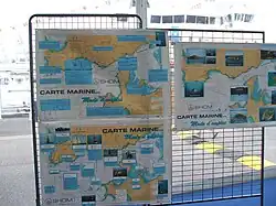 Le service hydrographique et océanographique de la Marine  en abrégé, le Shom[5]  est un établissement public à caractère administratif français placé sous la tutelle du ministère des Armées. Il a pour mission de connaître et décrire l'environnement physique marin et d'en prévoir l'évolution. À ce titre, il assure la constitution de bases de données maritimes et littorales de référence pour de nombreux thèmes : profondeur des fonds marins, épaves, courants, température de l'eau, salinité, nature des fonds, etc. Il publie les ouvrages nautiques  dont les cartes marines  pour le compte de la France. Il a également une mission de soutien à la Défense, et aux politiques publiques de la mer et du littoral.