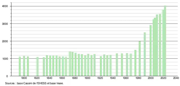 - ↑ Fiches Insee - Populations de référence de la commune pour les années 2006, 2007, 2008, 2009, 2010, 2011, 2012, 2013, 2014, 2015, 2016, 2017, 2018, 2019, 2020, 2021 et 2022.