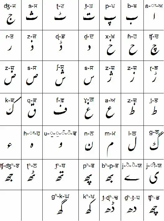 Comparaison shahmukhi-gurmukhi