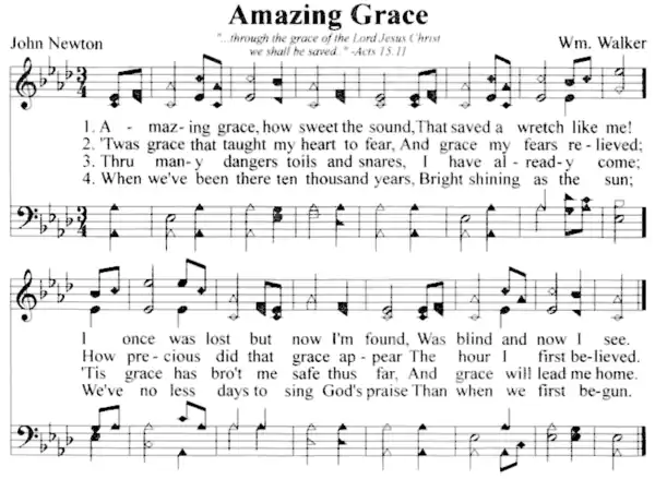 Le système à sept shapes tel qu’il est utilisé dans le Sud des États-Unis par les Églises baptistes indépendantes dans un recueil moderne d’hymnes :