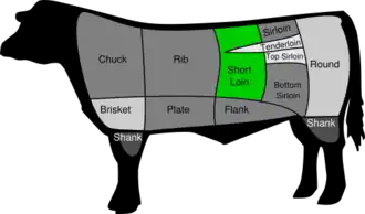Le short loin est le nom américain d'une piècede bœuf découpée dans la partie arrière du boeuf [1]. Il contient une partie des vertèbres (colonne vertébrale) et comprend le haut de la longe et le filet. Cette coupe donne des steak, notamment le bifteck d'aloyau, le contre-filet (Kansas City Strip, New York Strip) et le T-bone (une coupe contenant également une partie de la viande du filet). Le T-bone est une coupe qui contient moins de filet que le porterhouse[2]. Le dictionnaire Webster le définit (en anglais) comme « une partie de l'arrière-train de bœuf immédiatement derrière les côtes qui est généralement coupée en steaks ». Le short loin est considéré comme une partie de bœuf tendre et noble[3].