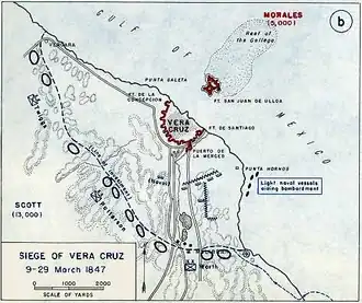Le corps expéditionnaire américain arrive à Veracruz au début mars. Scott étudie les défenses et conclut qu'un bombardement naval, seul, ne suffira pas à faire tomber la ville. Il choisit la plage Collado à 5 km au sud de Veracruz pour son débarquement. La 1re Division de Worth est choisie comme unité de débarquement. Les navires de Connor se positionnent à moins de cent mètres de la plage, afin d'offrir une couverture d'artillerie en cas de besoin.