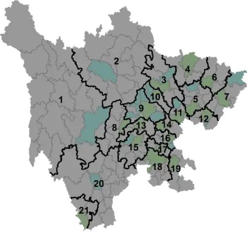 | Subdivisions administratives du Sichuan | |||||||||||||