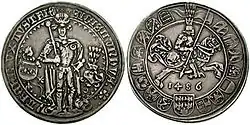 L’archiduc Sigismond, après avoir procédé à une réforme drastique du monnayage autrichien, commença à faire frapper à Hall une grosse pièce d’argent valant un florin d’or ou gulden (Guldiner ou Guldengroschen), un précurseur du thaler (l'ancêtre du dollar, qui devient bientôt un modèle pour d'autres pays européens.