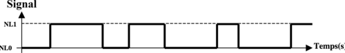 La figure ci-contre représente un signal logique et permet d'introduire deux nouveaux termes :