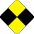 Ce signal annonce une zone qui doit être franchie avec le pantographe baissé. Il permet au mécanicien de faire les manipulations nécessaires pour avoir ouvert le disjoncteur principal et abaissé le pantographe avant le signal suivant. |