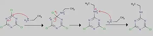 Elle fait partie, comme l'atrazine et le terbuthylazine des dérivés chlorés de la 1,3,5-triazine.