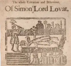 - ↑ (en) « Print; broadside: The whole Execution and Behaviour of Simon, Lord Lovat ». 1997,0223.1, catalogue en ligne du British Museum.