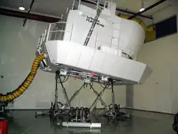 - pour la préparation au premier vol : simulateur d'intégration avec mouvement et visuel extérieur où tous les systèmes sont représentés. C'est ce simulateur qui, une fois calibré selon l'avion réel, sert de référence pour les simulateurs d'entraînement à ce modèle d'avion.