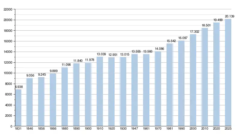 - Source : DGS - Remarque: 1831 jusqu'à 1981=recensement; depuis 1990=nombre d'habitants chaque 1er janvier[5]